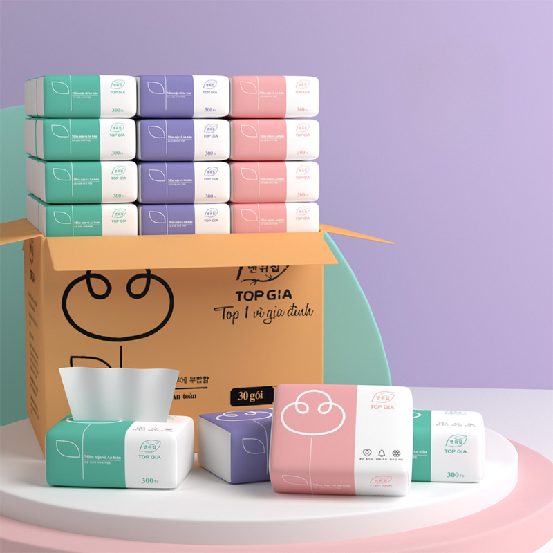 Bảng giá sỉ 1 Thùng 30 Gói Khăn Giấy Ăn 3 Màu Top Gia Loại Nhỏ