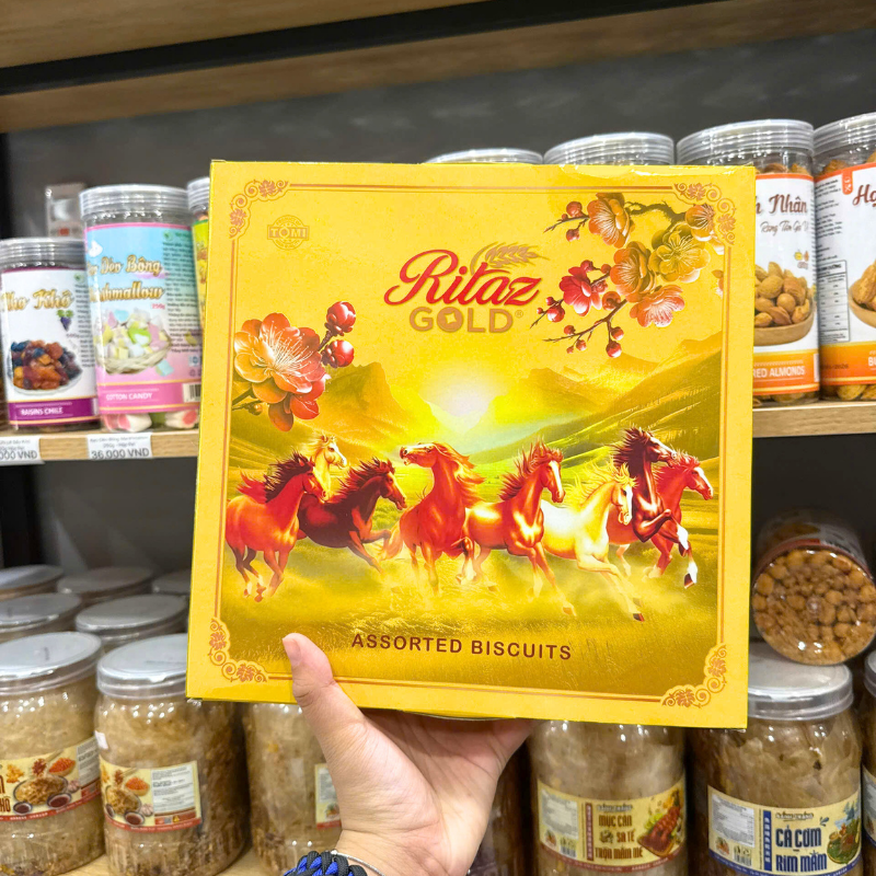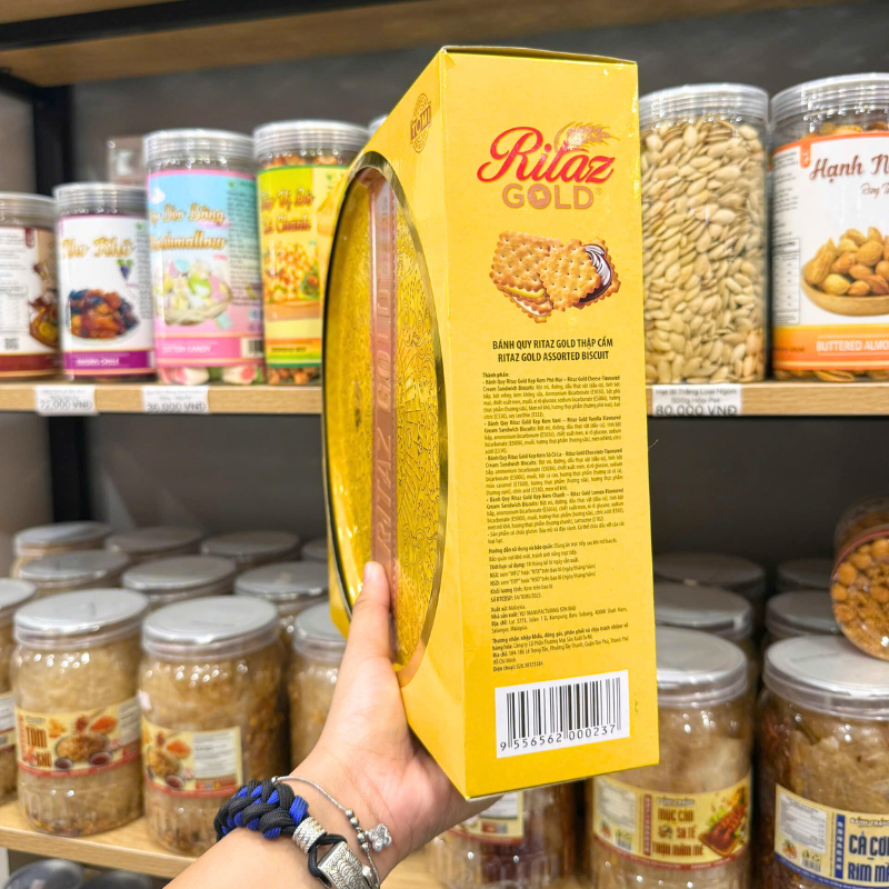 Bảng giá sỉ bánh Quy RITAZ GOLD Thập Cẩm Hộp Thiếc Hoa Văn Vàng 315g