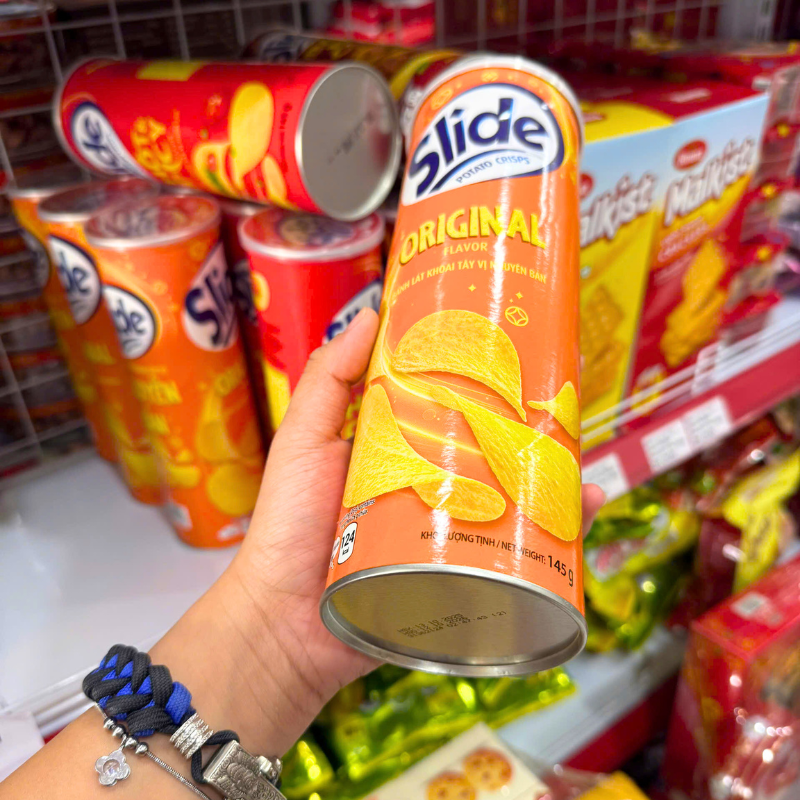 Bảng giá sỉ bánh Snack Khoai Tây Lát Slide Vị Nguyên Bản – Bánh Slide Khoai Tây Màu Cam 145Gr (Hộp To)