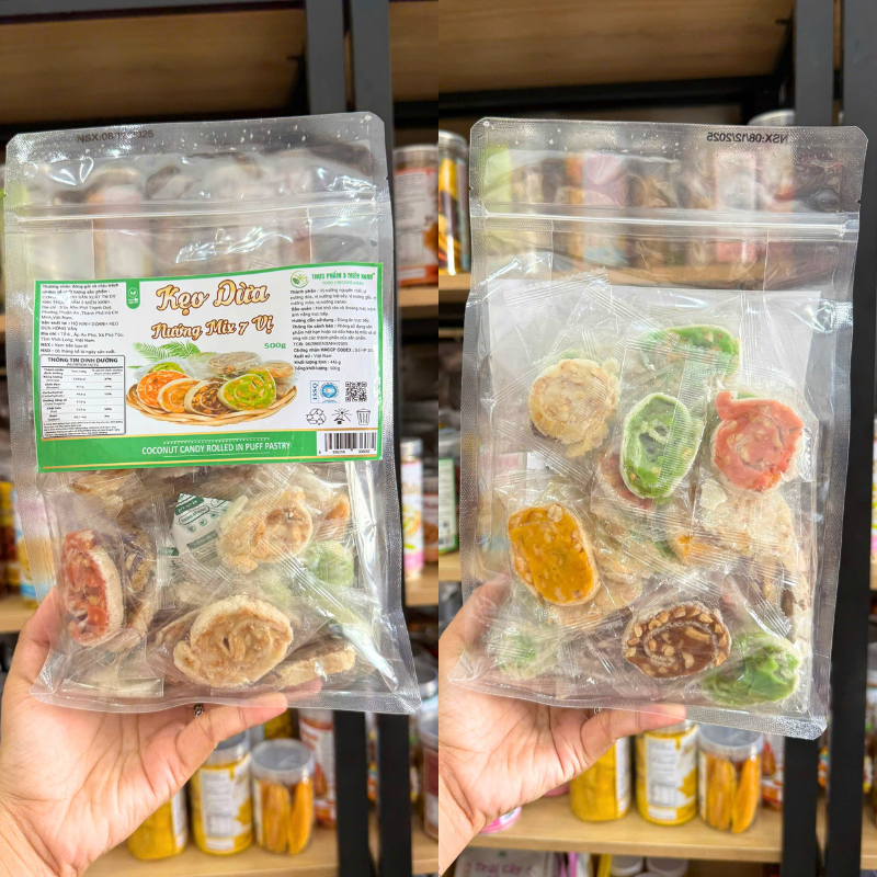 Bảng giá sỉ kẹo Dừa Nướng Mix 7 Vị 500g – Túi Zip Trong
