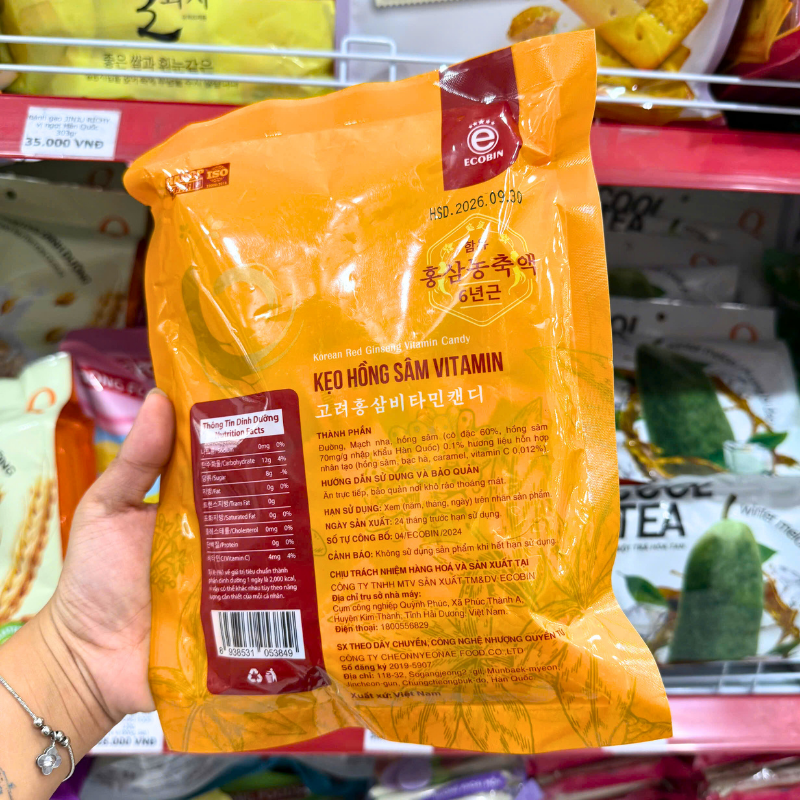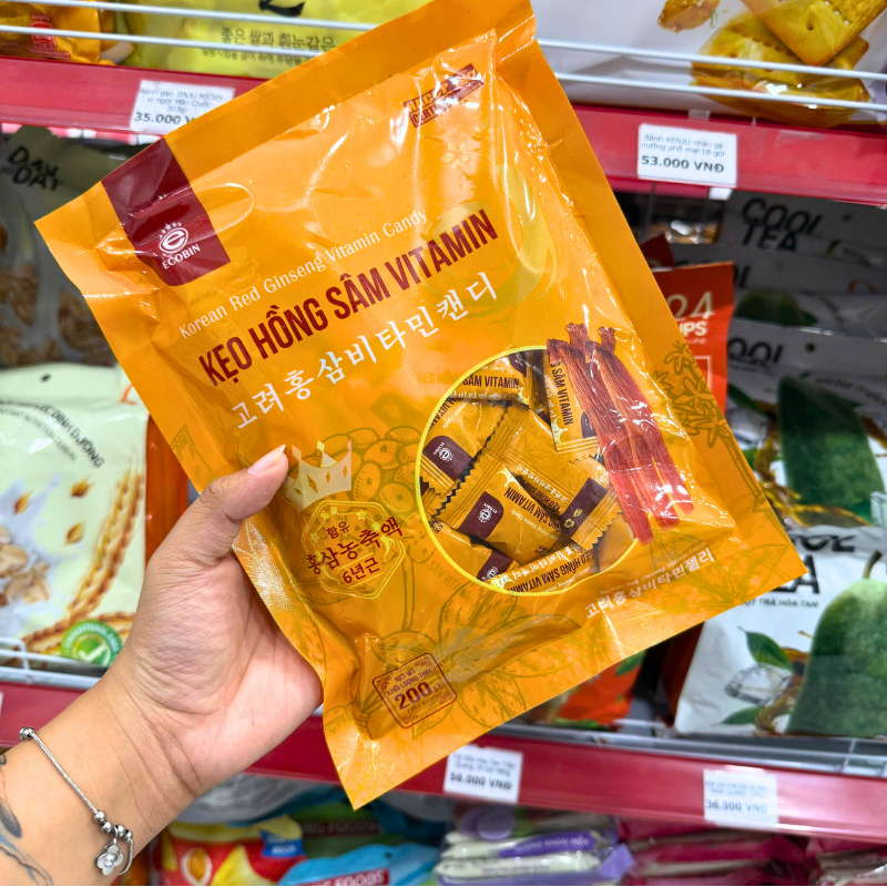 Bảng giá sỉ kẹo Hồng Sâm Vitamin Hàn Quốc ECOBIN 200g – Bịch Vàng