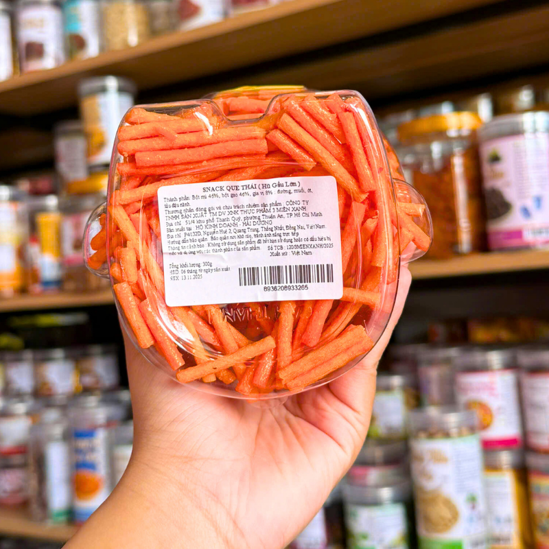Bảng giá sỉ snack Que Thái 300g – Hộp Gấu Lớn