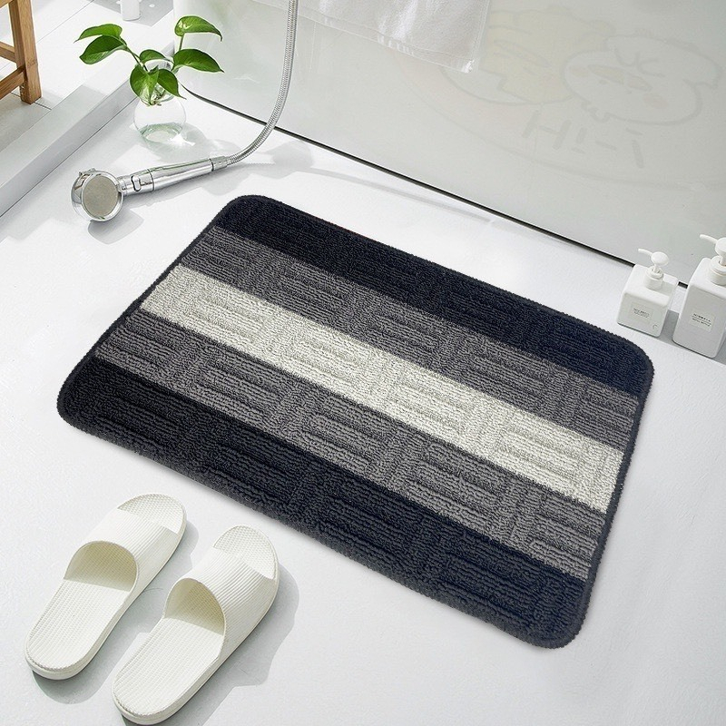 + Thảm lau chân kẻ sọc có lông mềm thấm hút nước êm chân khi dùng đặc biệt là chống trơn chươt.