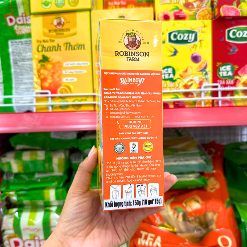 Bảng giá sỉ trà Hoà Tan Robinson Farm Vị Đào Donut 150g