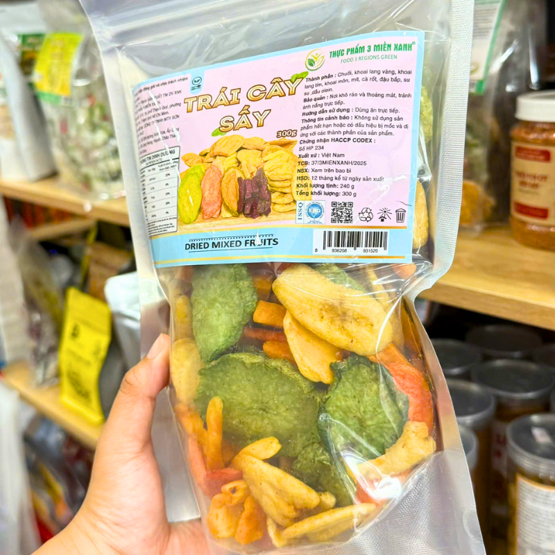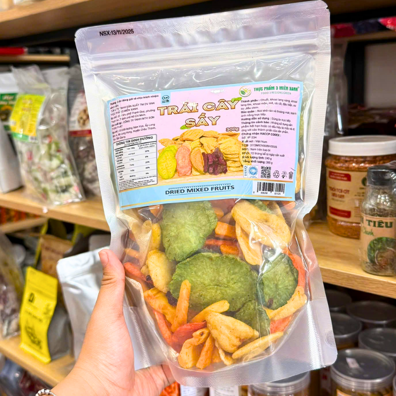 Bảng giá sỉ trái Cây Thập Cẩm Sấy Giòn 300g – Túi Zip Bạc
