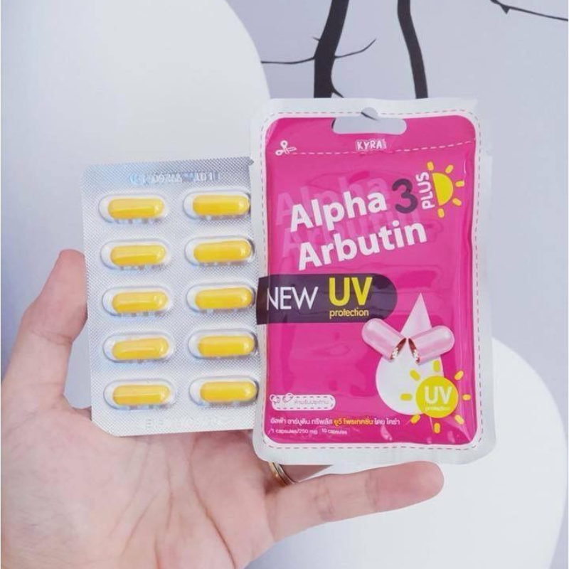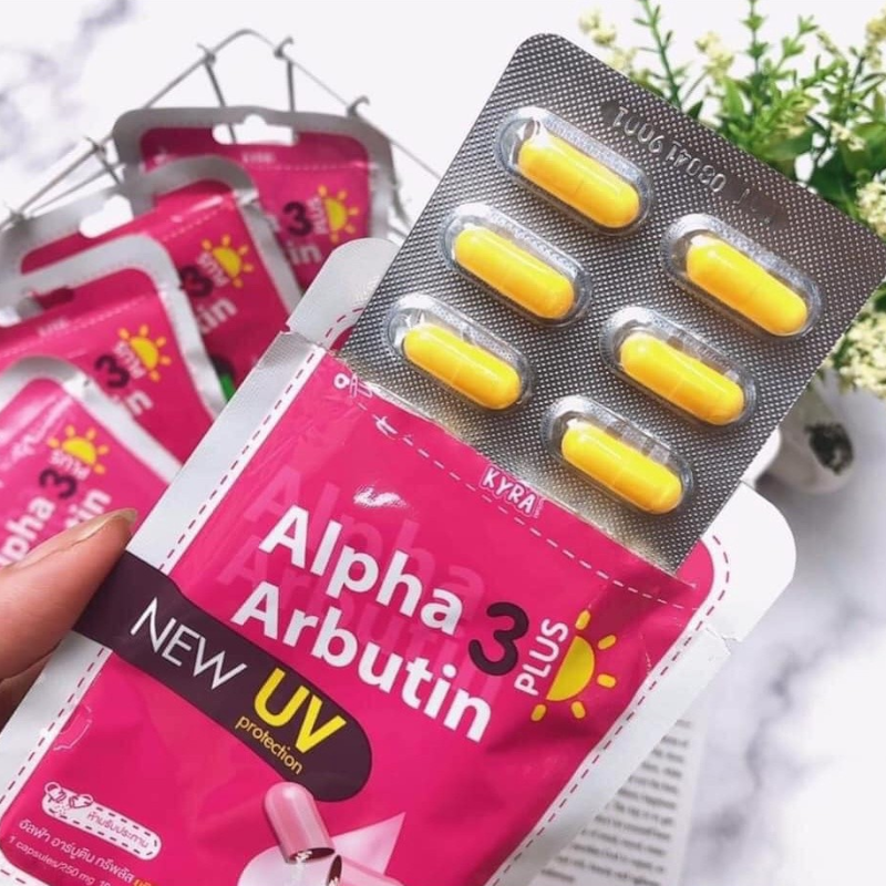 Bảng giá sỉ viên Bột Kích Trắng Body Kyra Alpha Arbutin 3 Plus+ Thái Lan Hỗ Trợ Chống Nắng- Túi 10 Viên
