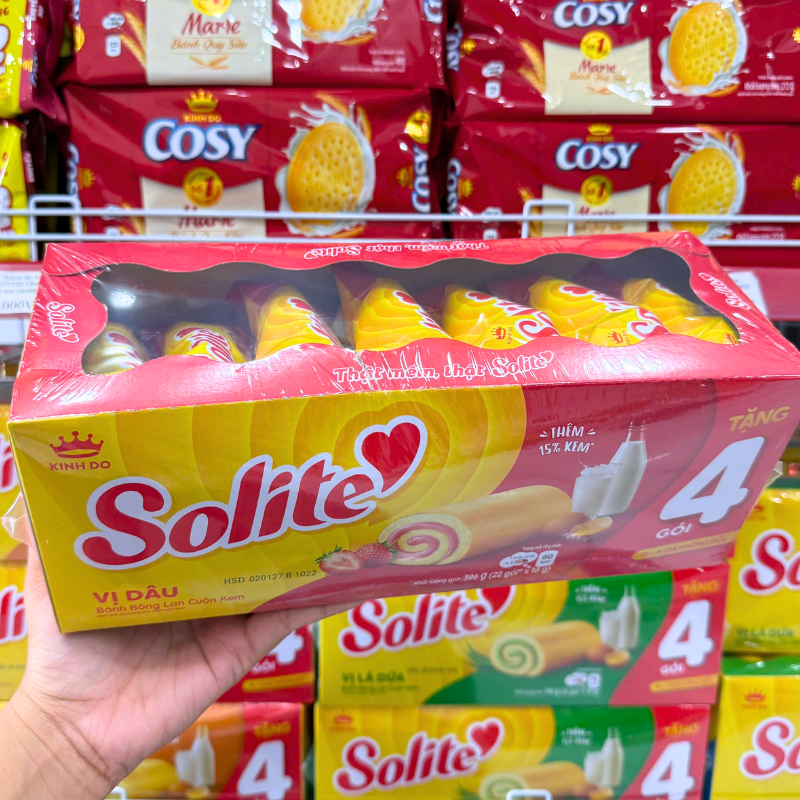 Bánh Bông Lan Cuộn Solite Vị Dâu Hộp Giấy Lớn 396g