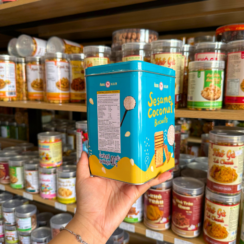 Bánh Quy Gạo Sữa Hộp Thiếc KILIN Thái Lan 400g – Hộp Xanh Dương Vàng