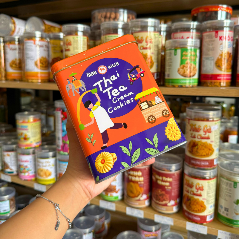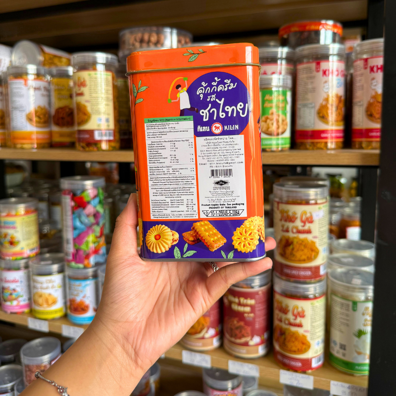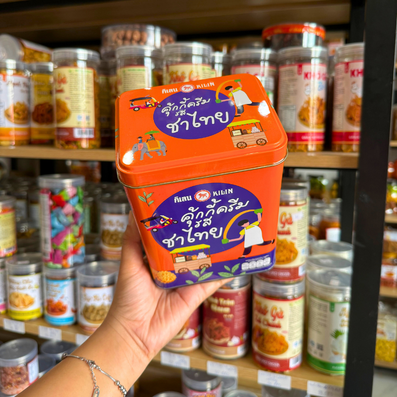Bánh Quy Nhân Trà Thái Hộp Thiếc KILIN Thái Lan 400g – Hộp Màu Cam Tím