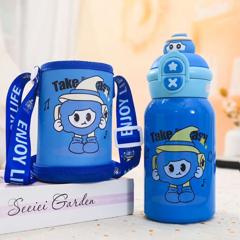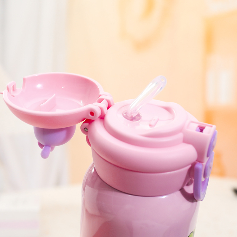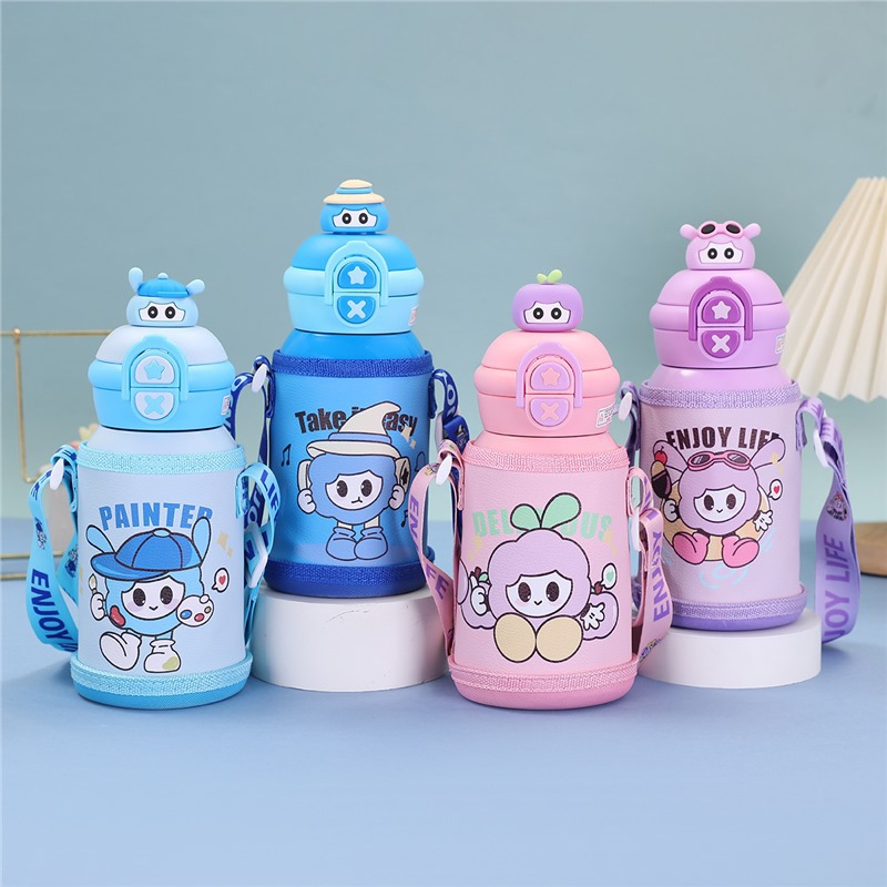 Bình Nước Giữ Nhiệt Cho Bé In Hoạt Hình Có Quai Đeo 450ml