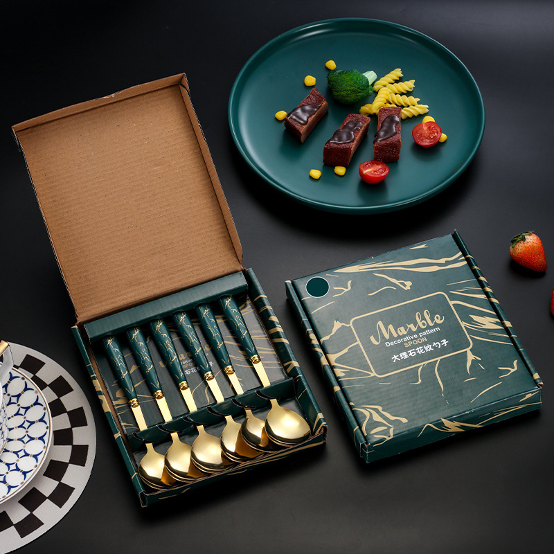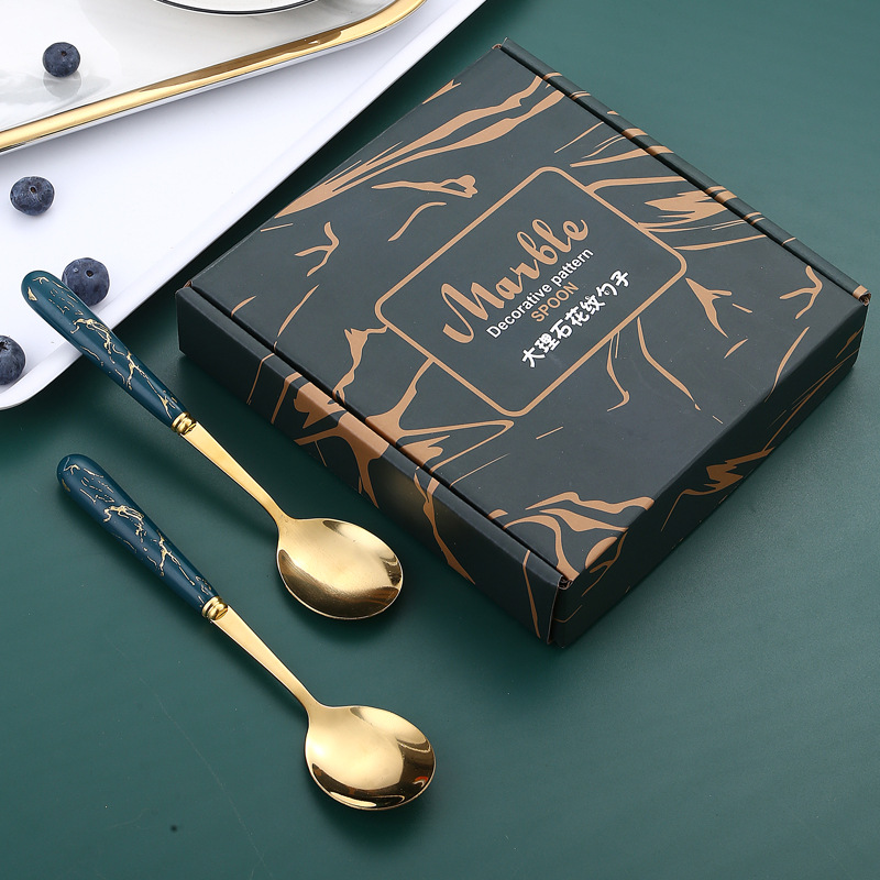 Bộ 6 Muỗng Inox 304 Vân Đá Tráng Vàng Kèm Hộp 16x18cm
