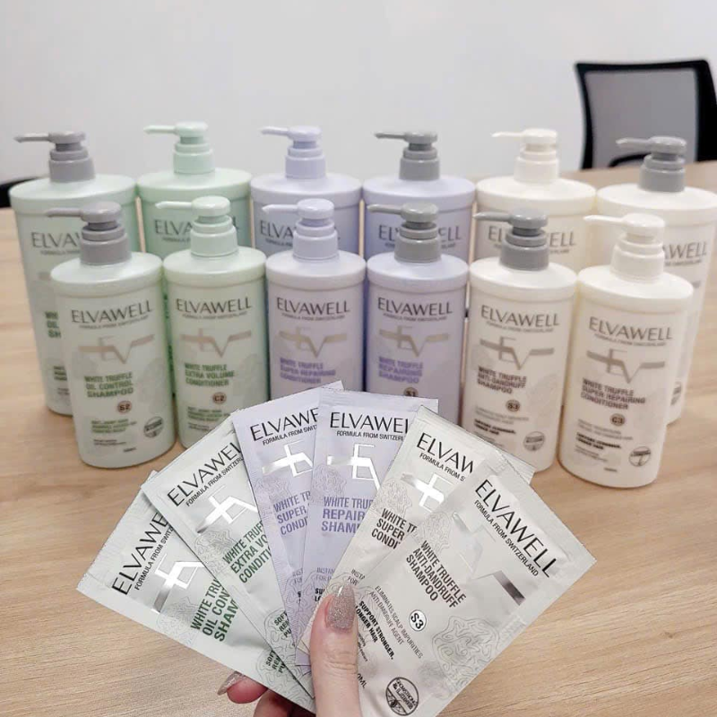 Combo Dầu Gội Xã Elvawell Màu Trắng 500ml Hỗ Trợ Nuôi Dưỡng Tóc Suôn Mượt Và Giảm Gàu – Tặng Gói Test Mini