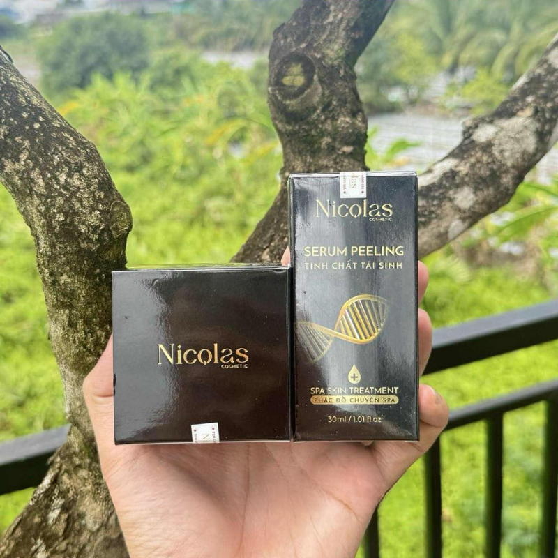 🌟 COMBO TÁI SINH NICOLAS – SERUM PEELING 30ML + KEM FACE MEN TẢO XANH 5G 🌟
