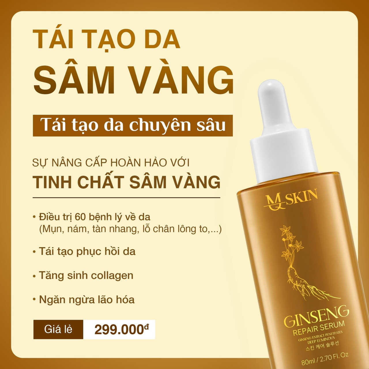 ✨ TÁI TẠO DA NHÂN SÂM VÀNG THẾ HỆ MỚI MQ SKIN cải thiện mọi khuyết điểm của làn da: thâm nám, khô ráp, mụn, da kích ứng,.