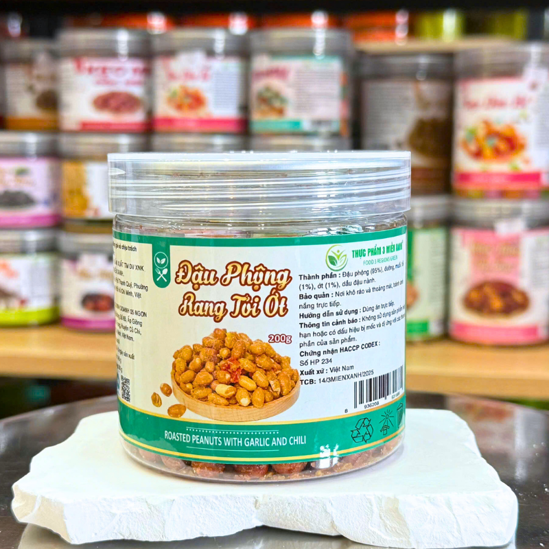 Đậu Phộng Rang Tỏi Ớt Mini 200g – Hộp Pet