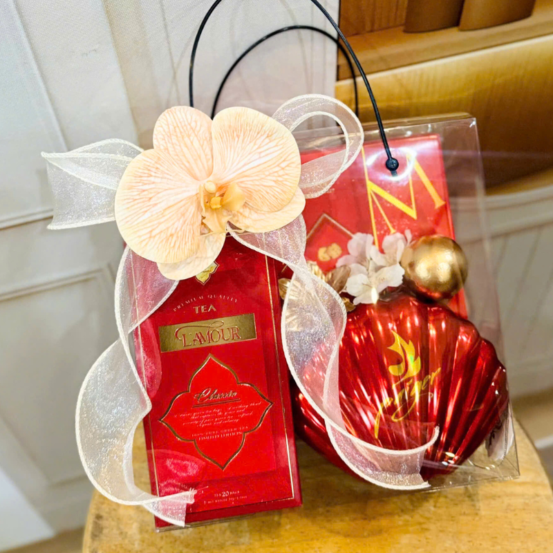 - Trà túi lọc Lamour – hương thơm nhẹ, uống dịu, rất hợp để biếu người lớn.