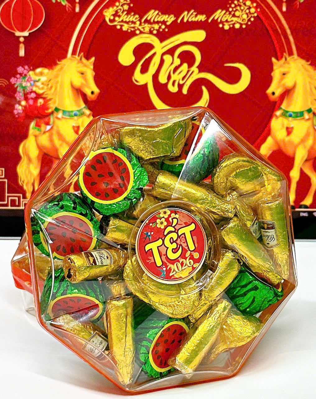 Hộp Quà Tết Kẹo Socola Mix 250g – Hộp Bát Giác