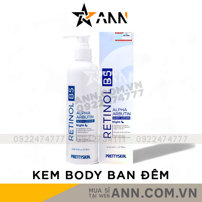 Kem Body Prettyskin Màu Xanh Ban Đêm Retinol B5 Alpha Arbutin Body Lotion 250ml