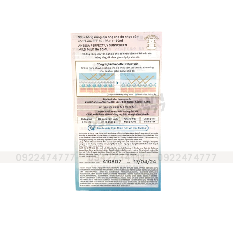 + Sữa chống nắng dịu nhẹ ANESSA Mild Milk SPF50+ PA++++ phiên bản mới với bao bì giấy thân thiện hơn với môi trường.