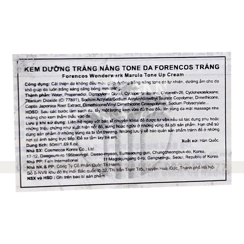 Kem Dưỡng Forencos Màu Trắng Wonderwerk Marula Tone Up Cream 50ml
