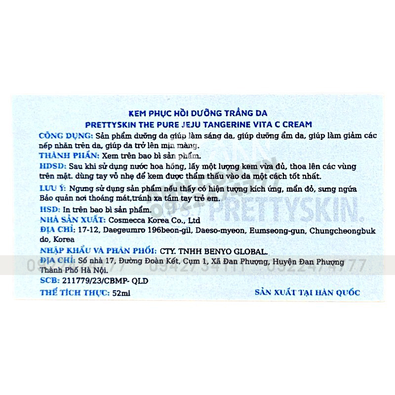 Kem Dưỡng Prettyskin The Pure Jeju Tangerine Vita C Cream 52ml