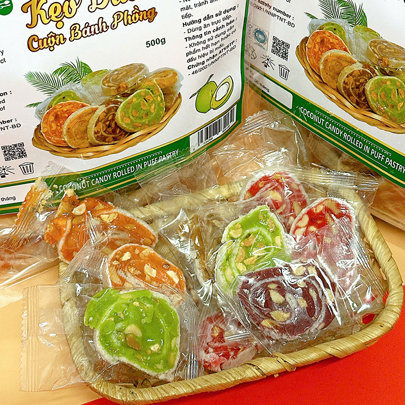 Kẹo Dừa Cuộn Bánh Tráng Mix 7 Vị Thơm Ngon – Túi Zip 500g