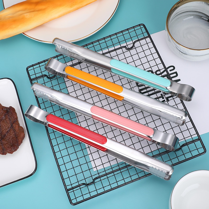 Kẹp Gắp Inox Có Ốp Chống Nóng Tay Cầm Silicon Chống Trượt 22x3cm