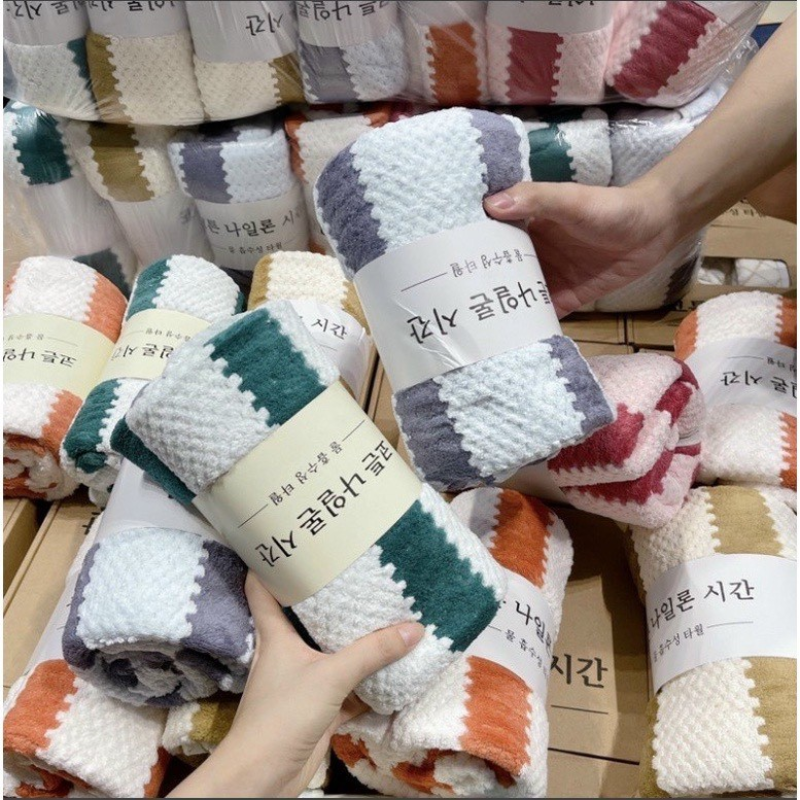 Khăn Tắm Kẻ Sọc Hàn Quốc Cao Cấp Nhiều Màu Size Lớn 135x65cm