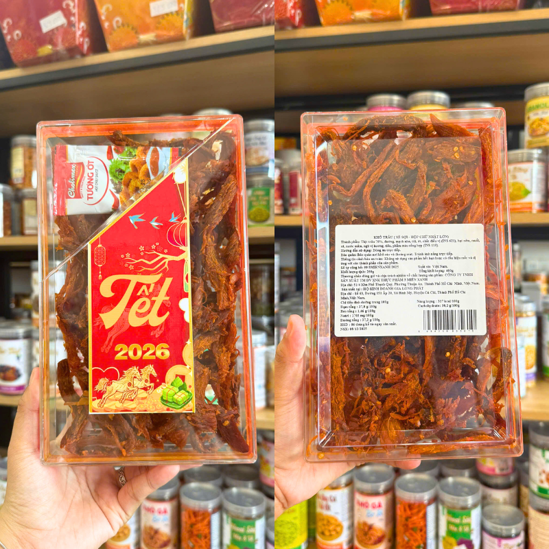 Khô Trâu Xé Sợi Tẩm Vị Bò Thơm Ngon 400g – Hộp Chữ Nhật Lớn