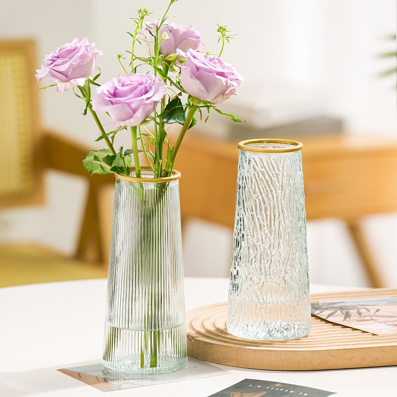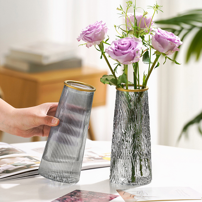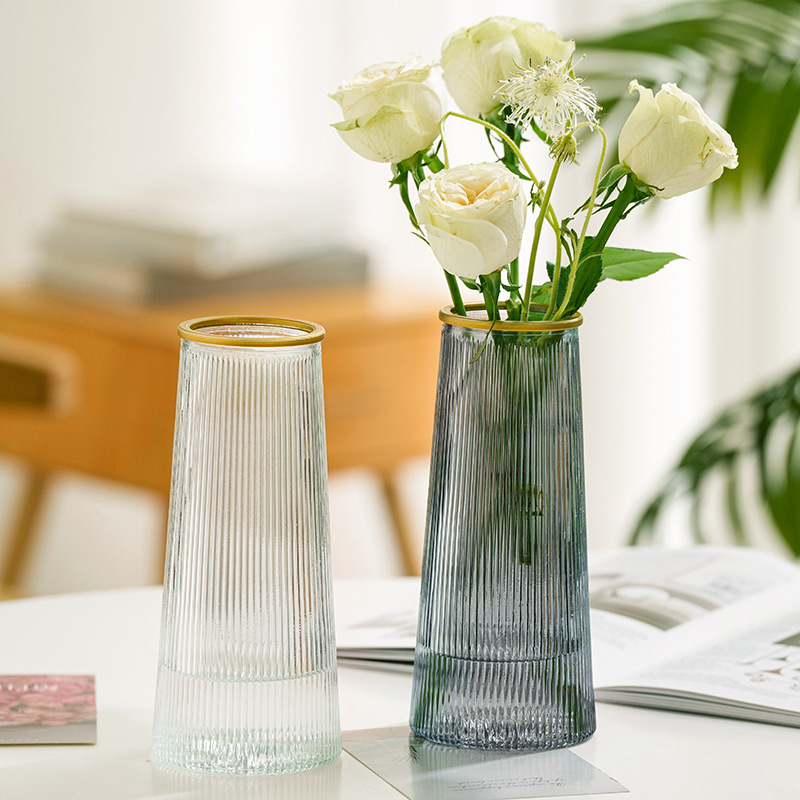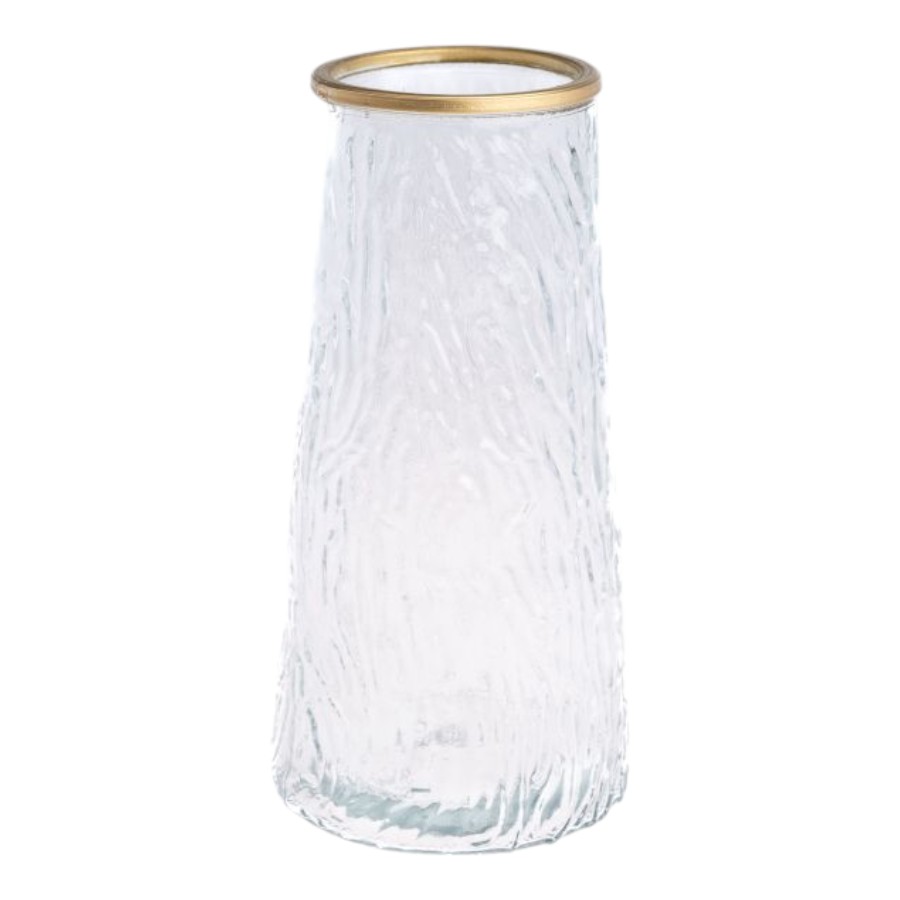 Lọ Hoa Thủy Tinh Trụ Sọc Viền Vàng Lucas 21x7x10cm