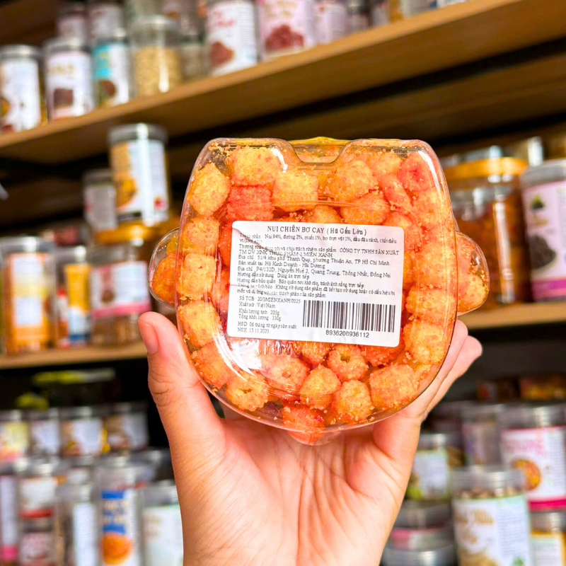 Nui Chiên Bơ Cay Thơm Ngon 330g – Hũ Gấu Lớn