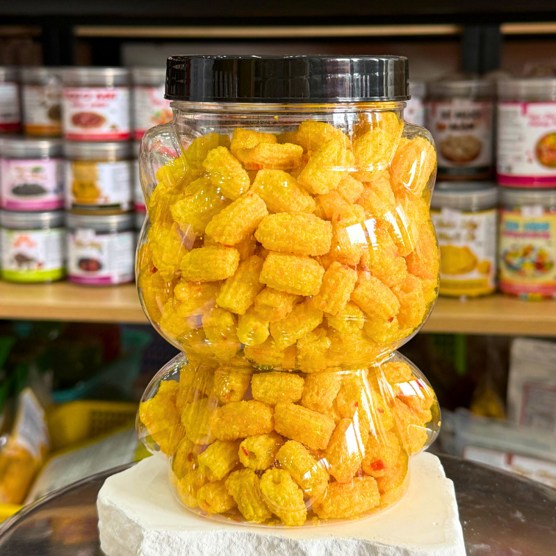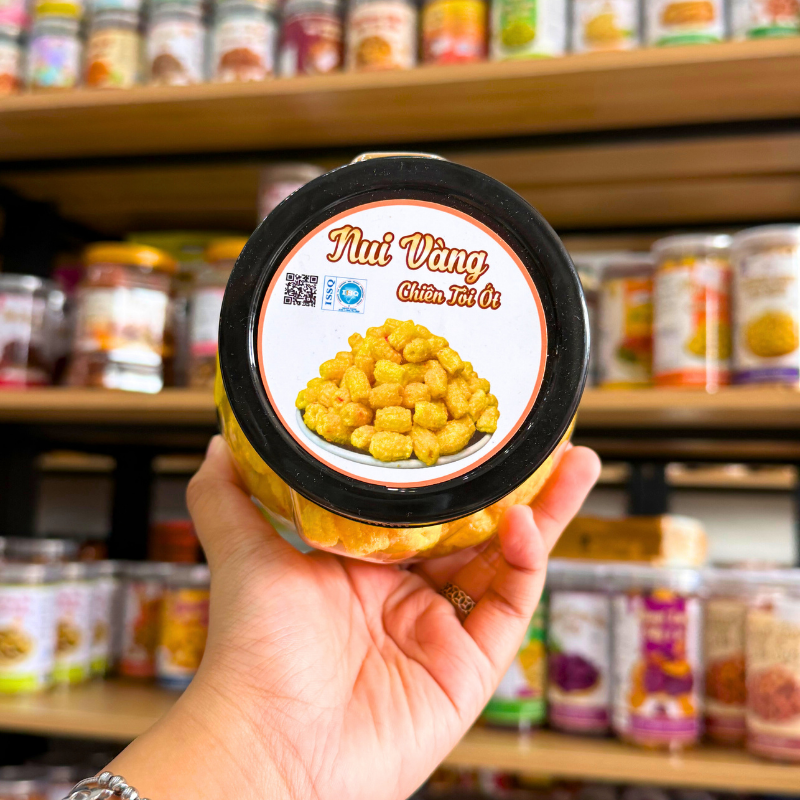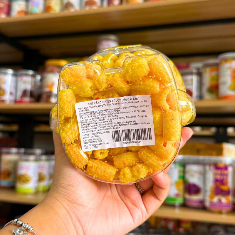 Nui Vàng Chiên Tỏi Ớt Đậm Vị 330g – Hũ Gấu Lớn