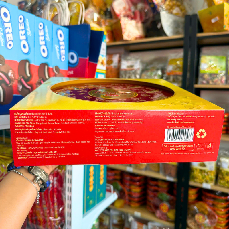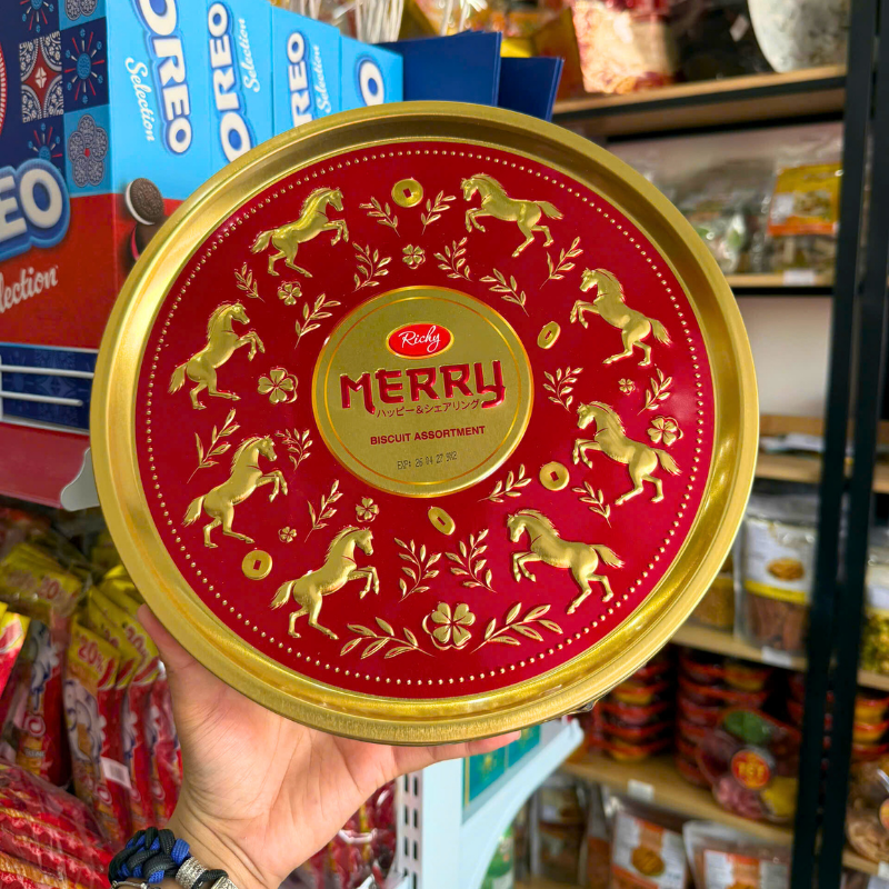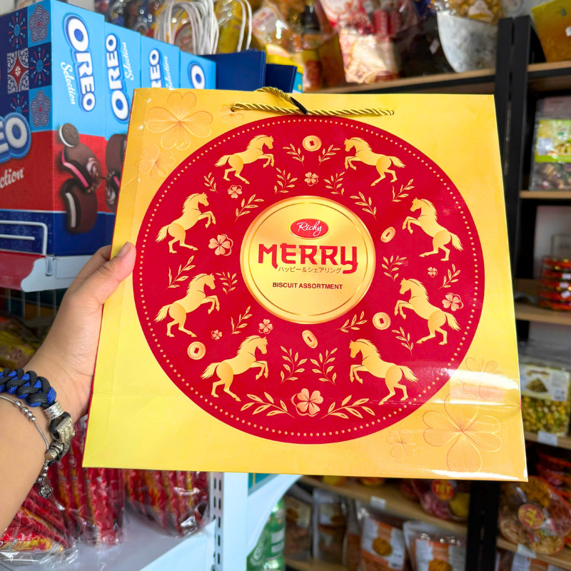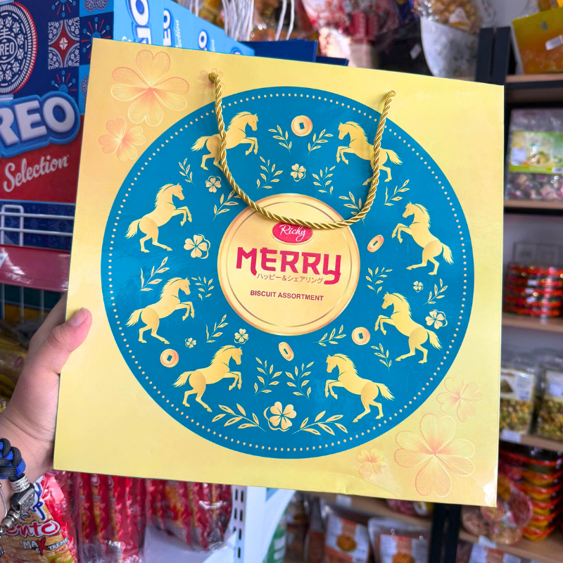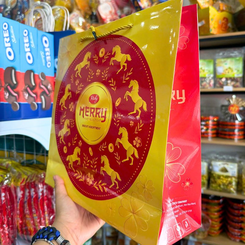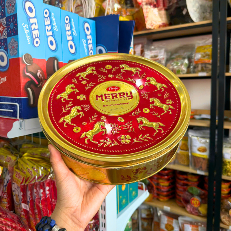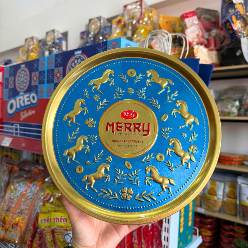 Phân phối bánh Quy Thập Cẩm RICHY MERRY Hộp Thiếc 334g (Xanh Dương/Đỏ) – Kèm Túi