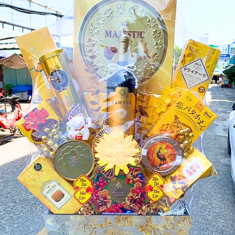 Không quá rực rỡ nhưng vẫn nổi bật, không quá phô trương nhưng đủ gây thiện cảm – đây là kiểu giỏ Tết mà ai nhận cũng sẽ mỉm cười.