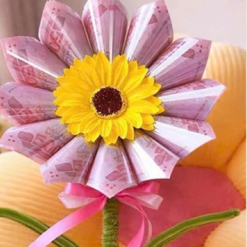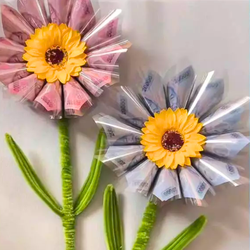 Thiết kế hoa hướng dương rực rỡ kết hợp phần gài tiền khéo léo, tạo nên món quà vừa có giá trị thẩm mỹ vừa mang ý nghĩa tài lộc – may mắn 💛