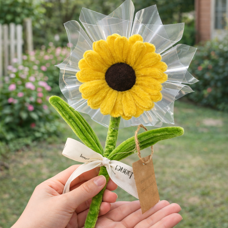 Phân phối [Không Đèn Chớp] Hoa Gài Tiền – Hoa Gắn Tiền – Hoa Đựng Tiền Hướng Dương Trong Suốt – Hoa Sáp
