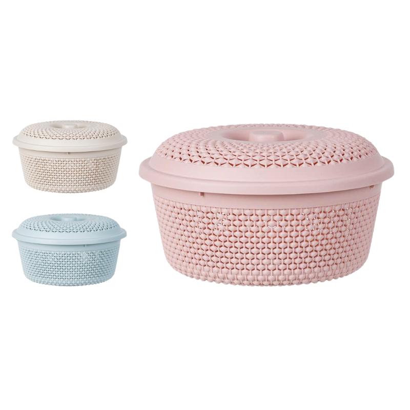 Rổ Nhựa Nắp Tròn Chấm Bi Hokori Có Nắp Chắn Bụi – Rổ Tròn Rửa Trái Cây Rau Củ