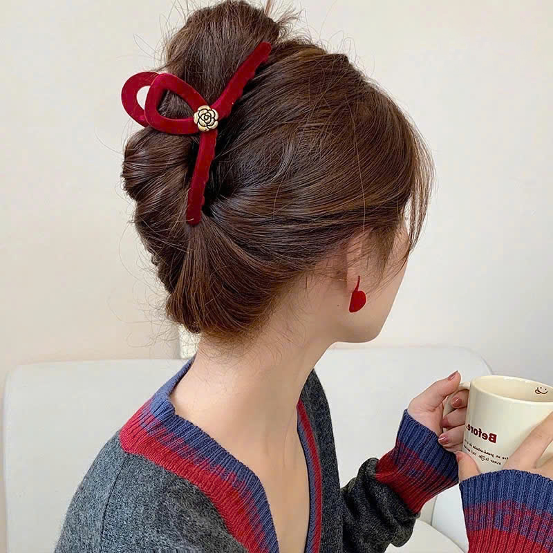 Set 4 Kẹp Tóc Nhung Đỏ Hot Mùa Tết 2025