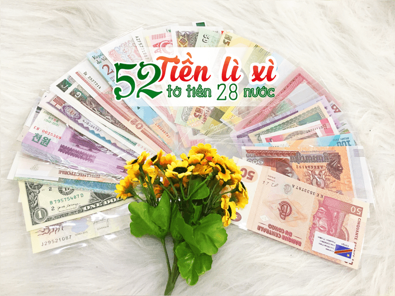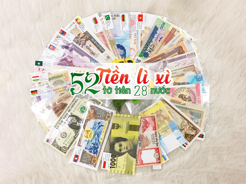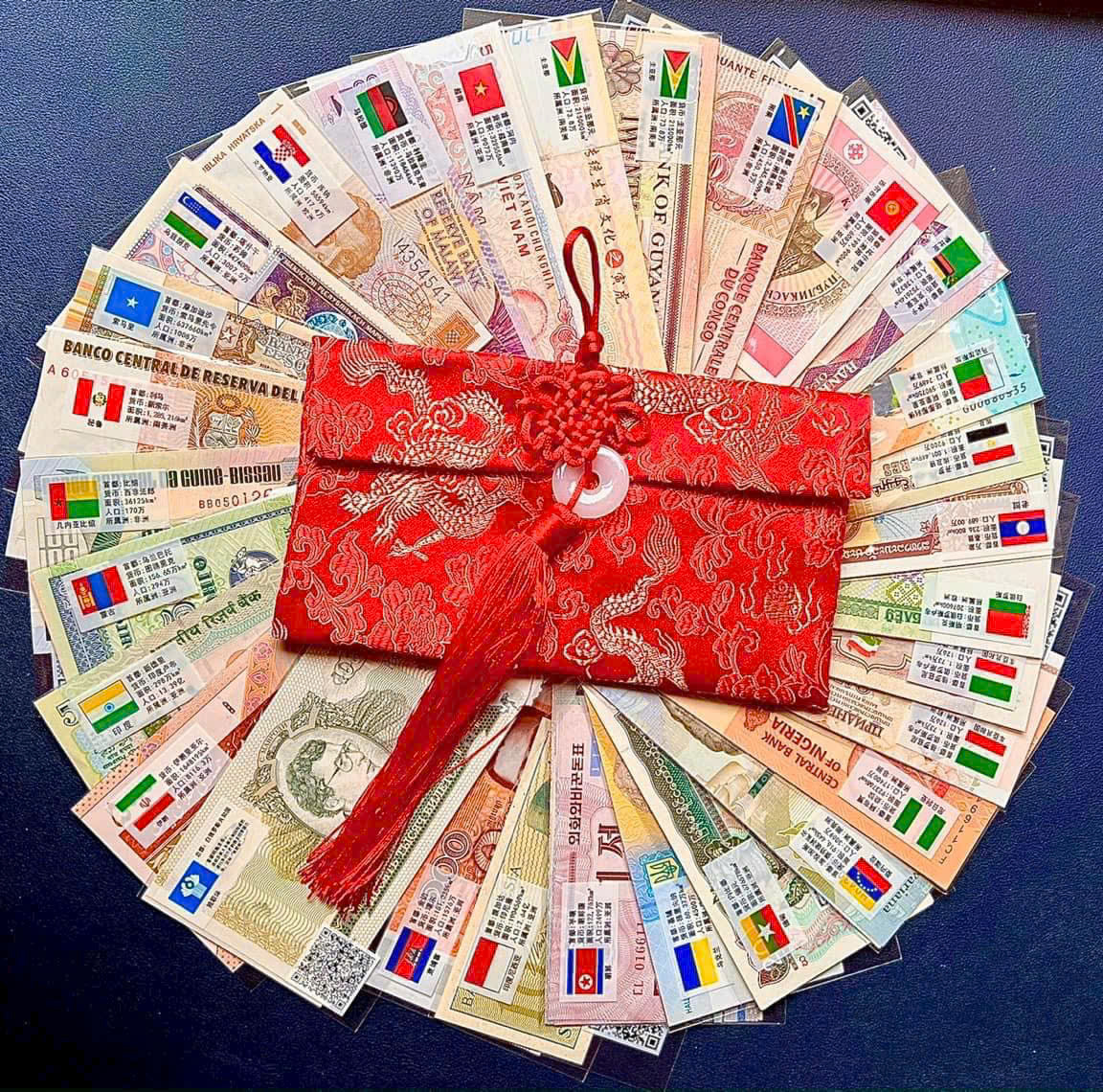 Bộ Sưu Tập 52 Tờ Tiền Giấy Từ 28 Quốc Gia – Kèm Túi Lì Xì Trưng Bày