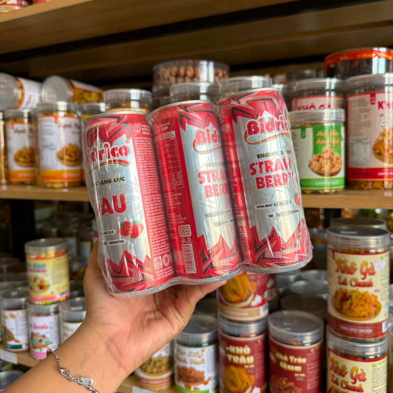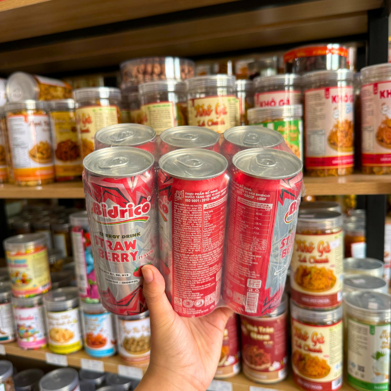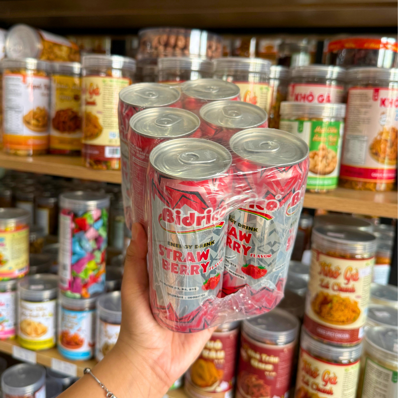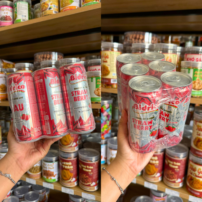 Set 6 Lon Nước Tăng Lực Bidrico Vị Dâu – Nước Ngọt Bidrico Dâu (325ml/Lon)
