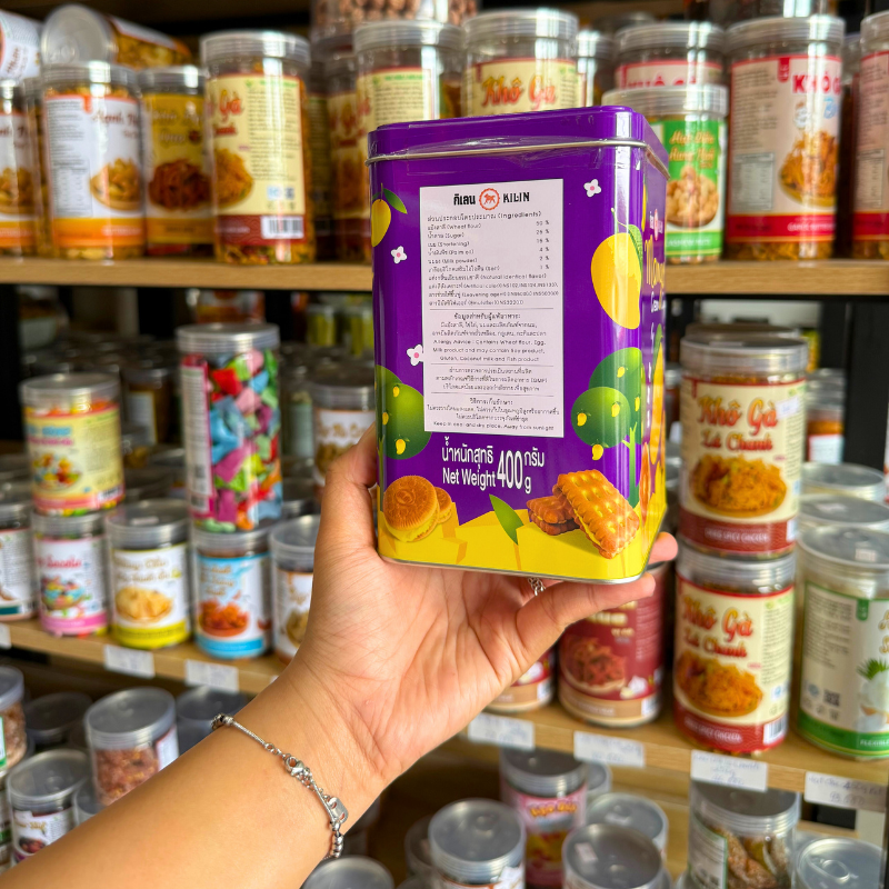 Sỉ bánh Quy Nhân Xoài Hộp Thiết Kilin Thái Lan 400g – Bánh Quy Nhân Xoài Hộp Thiết Tím