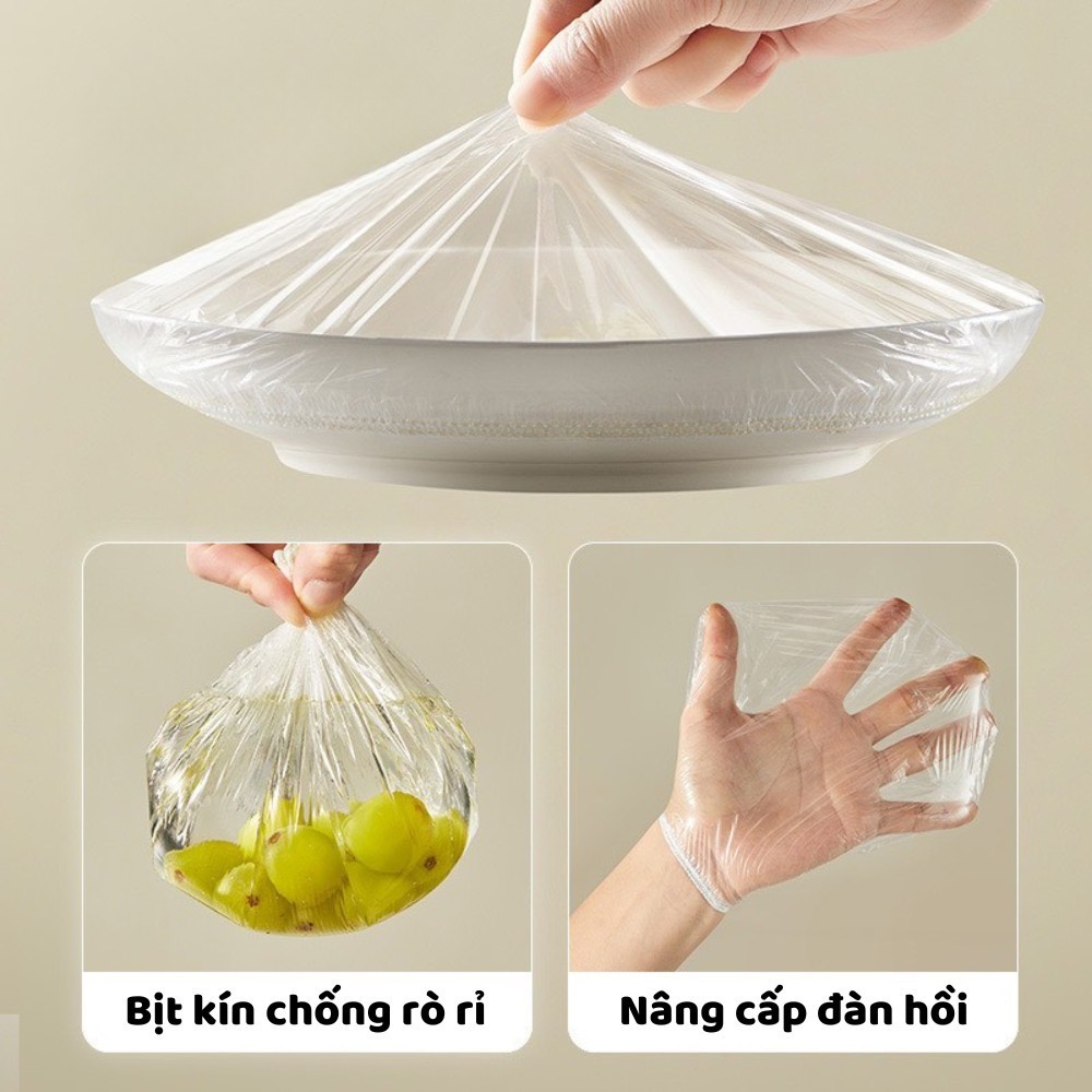 Sỉ gói 100 Màng Bọc Thực Phẩm Dạng Rút Siêu Dai Có Nắp Đậy Kính 30X14cm