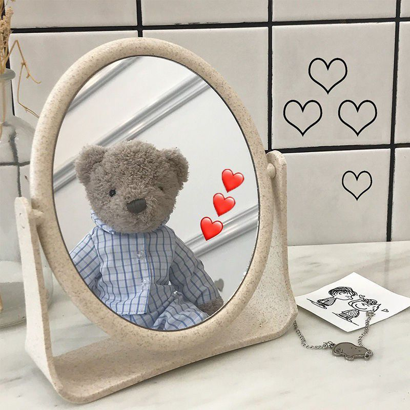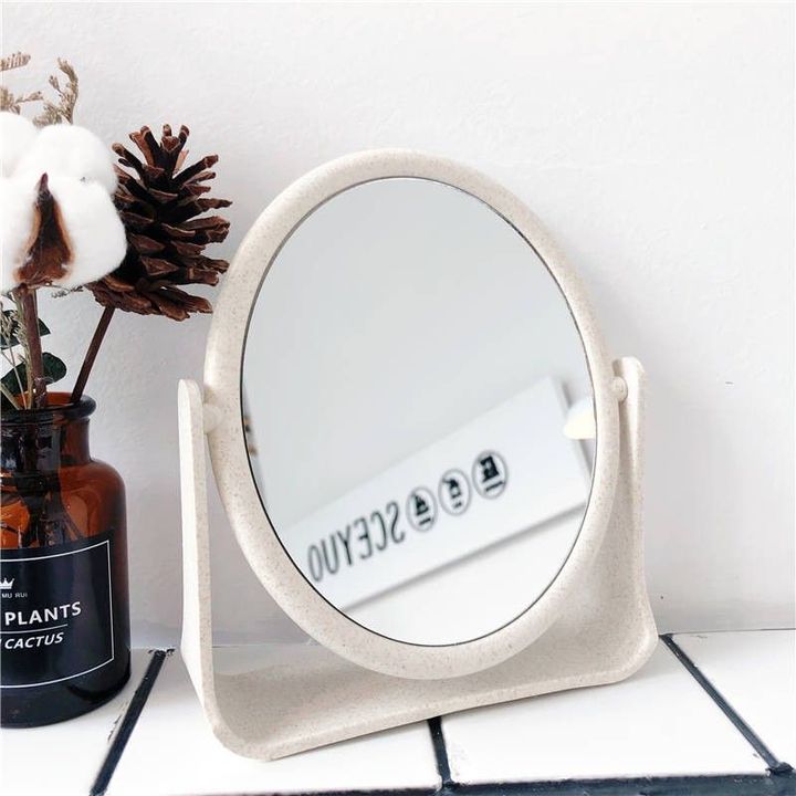 Sỉ gương Tròn Để Bàn Lúa Mạch – Giương Trang Điểm Để Bàn – Gương Nhựa – Khớp Xoay 360 Độ 19x16cm
