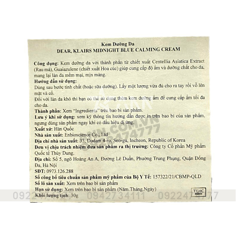 Sỉ kem Dưỡng Ẩm Klairs Midnight Blue Calming Cream 30g