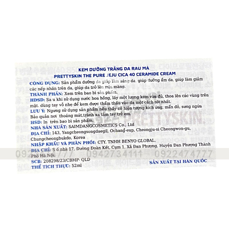Sỉ kem Dưỡng Trắng Da Prettyskin The Pure Chiết Xuất Rau Má Ceramide Cream 52ml