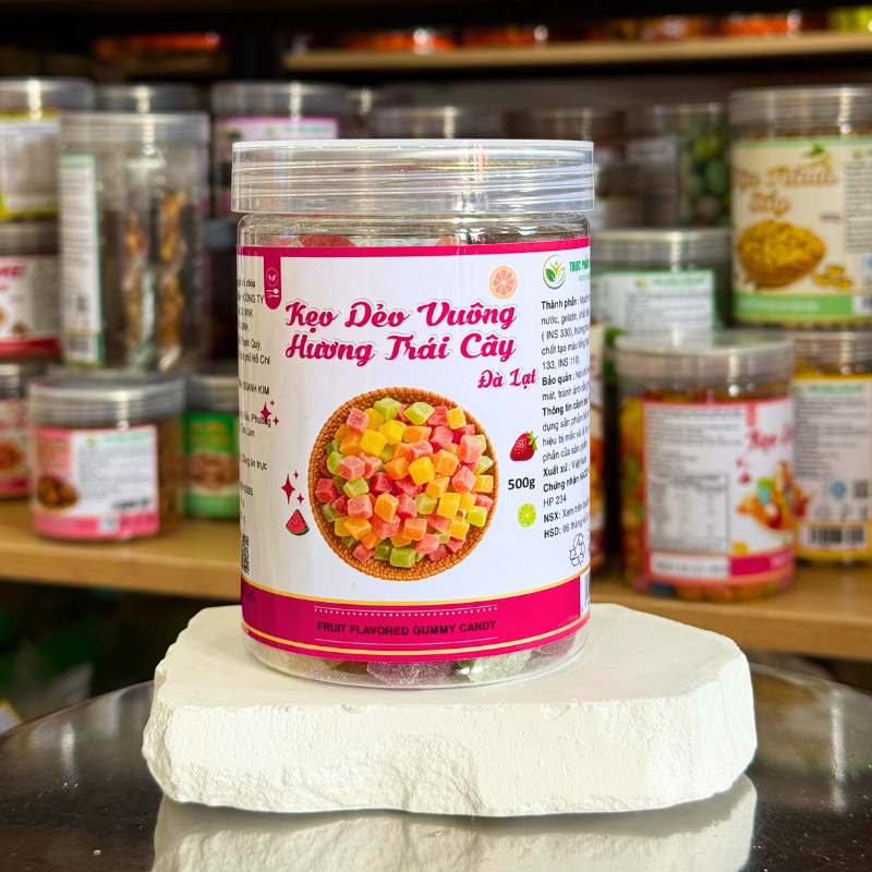 Sỉ kẹo Dẻo Vuông Hương Trái Cây – Kẹo Dẻo Đà Lạt Thơm Ngon 500g – Hũ Pet