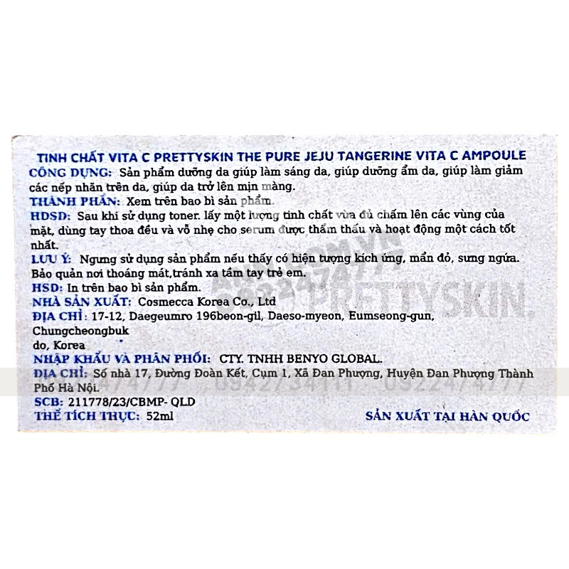 Sỉ serum Prettyskin The Pure Jeju Tangerine Vita C Ampoule 52ml