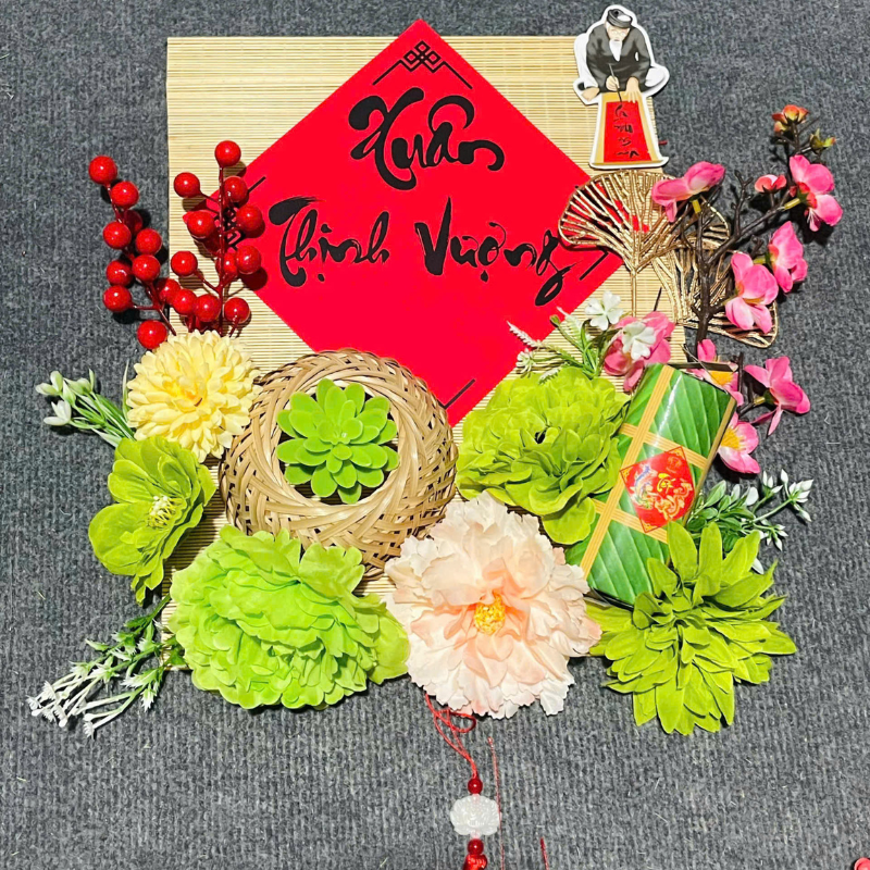 Sỉ set Phụ Kiện Mành Tre Vuông Nhiều Mẫu Ráp Sẵn Trang Trí Tết