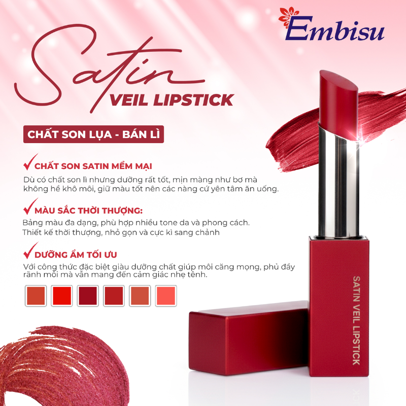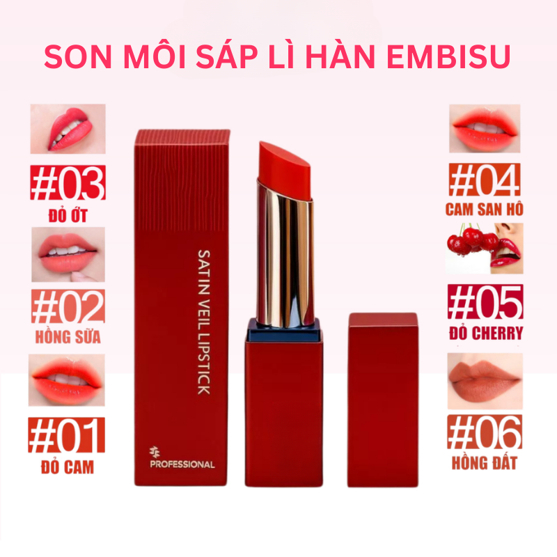 Son Môi Sáp Lì Hàn Quốc Embisu Satin Veil Lipstick – 6 Màu