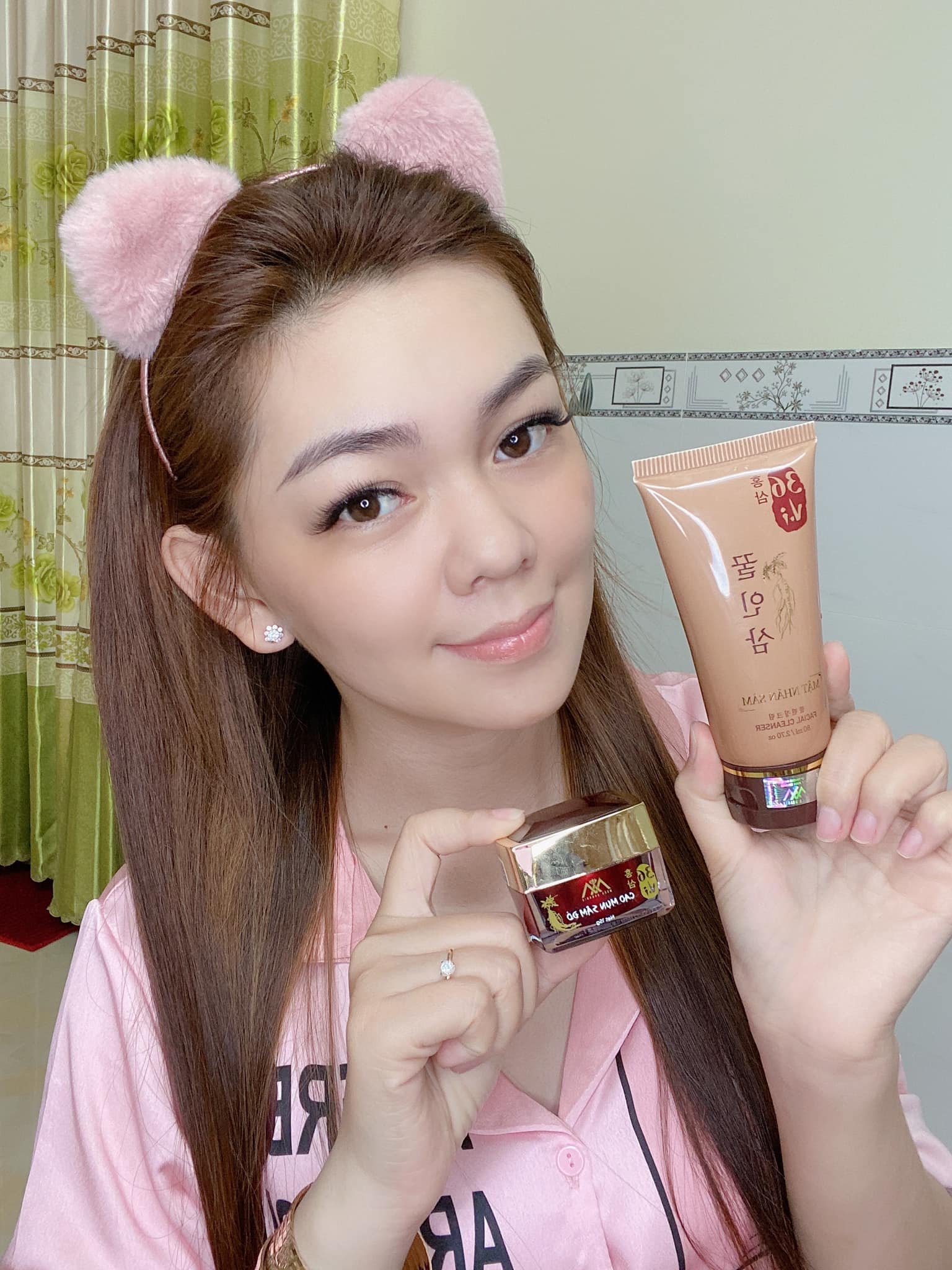 Bước 1: Làm ướt mặt và cho một lượng Sữa rửa mặt Mật Nhân Sâm ra lòng bàn tay